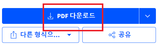 화면 오른쪽 부분에 있는 PDF 다운로드 버튼을 눌러 다운로드 해주세요. 다른 형식으로 변환을 누르시면 워드, 파워포인트, 엑셀로도 변환이 가능합니다.