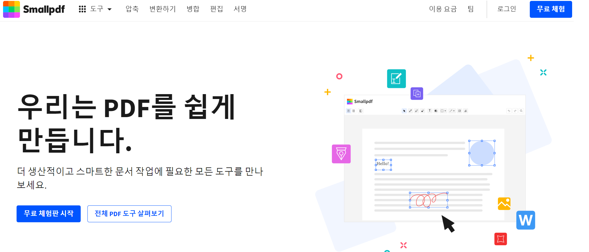 Smallpdf - 모든 PDF 파일을 아주 쉽게 변환, 또는 편집이 가능하게 해줍니다. 뿐만 아니라, 모든 PDF 관련 문제를 저희 웹사이트에서 해결할 수 있습니다. 그리고,,,네, 맞습니다. 무료입니다!