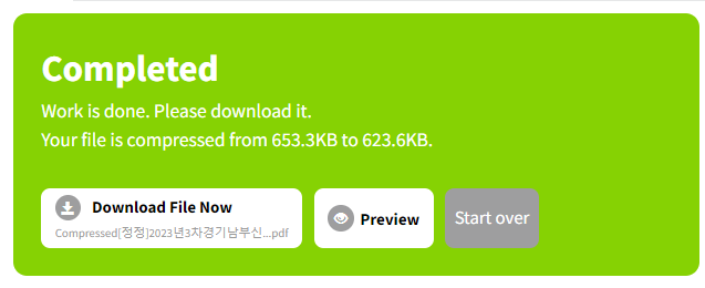 pdf 용량 줄이기가 완료되었으면 Download File Now 버튼을 눌러 다운로드 받아주세요.