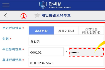 - 모바일 웹사이트를 통한 개인통관고유부호 조회