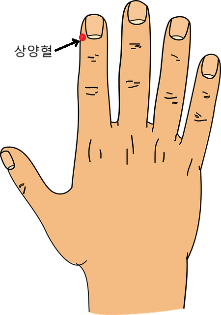 그 다음은 급똥 혈자리는 상양혈입니다. 엄지 손가락 쪽 검지 손가락 손톱이 시작 되는 곳입니다. 이곳을 손톱이나 이쑤시개로 꾹꾹 눌러 자극을 주세요. 상양혈은 열을 내려주는 혈자리로, 장이 좋지 않아 설사 증세가 있을 때 뿐만 아니라 감기에 걸려 열이 나거나 목이 부었을 때, 치통, 두통 시에 증상 완화 효과가 있습니다.