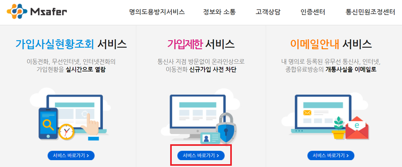 엠세이퍼 신청 방법 3/4 - 가입 제한 서비스